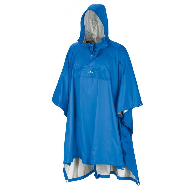 Tessuto Nylon Ripstop alluminato • Cuciture nastrate • Resistenza alla colonna d’acqua: 2000 mm • Custodia • Bottoni a pressione e occhielli rinforzati (L) • Cappuccio sagomato regolabile con sistema One touch.